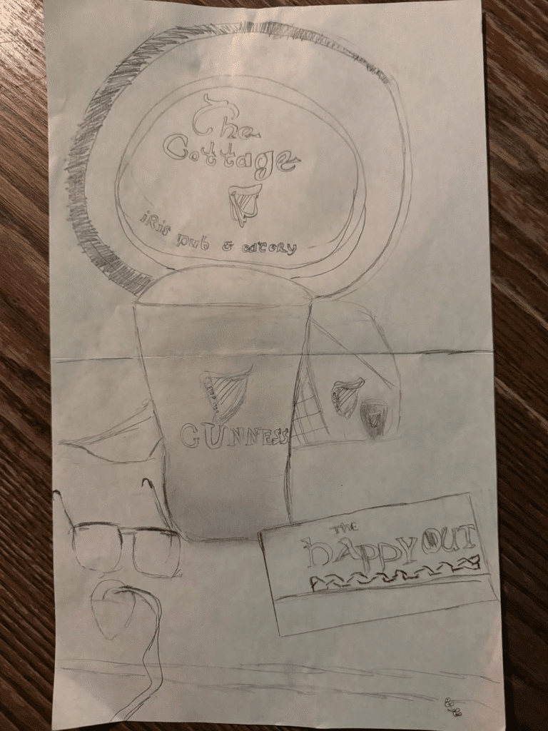 Our biggest fan, Gabby drew this awesome picture last week during our performance at The Cottage Irish Pub— I think she’s got a bright future in art! Thanks, Gabby!